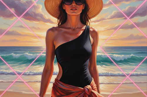 Podsumowując, bikini bandeau w geometrycznych wzorach błękitu to nie tylko strój, ale cały nastrój wakacji. Dla blondynki ze Szwecji na tropikalnej plaży to połączenie komfortu, stylu i odrobiny humoru. Jeśli macie ochotę na więcej plażowych inspiracji, dajcie znać w komentarzach – może następnym razem pogadamy o letnich dodatkach. Do zobaczenia na plaży, kochani! 😊