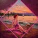 Neon-pink outline canvas of diamonds with modern airbrush oil painting with predominant colors such as red shades, pink shades, purple shades, orange shades, lemon shades of: of a slender French woman with dark blonde hair in a loose braid, wearing a black and neon lemon wrap-around bikini, standing on a sunny beach with gentle ocean waves in the background. She has a subtle tan and is facing slightly to the side, her expression joyful and elegant. The beach is relatively empty, with a few distant palm trees and a clear sky, maintaining focus on her. The scene is set during the day with natural, warm lighting, and a light breeze slightly moves her hair and the water, creating a dynamic yet serene atmosphere. BACKGROUND STYLE: Motion blur.