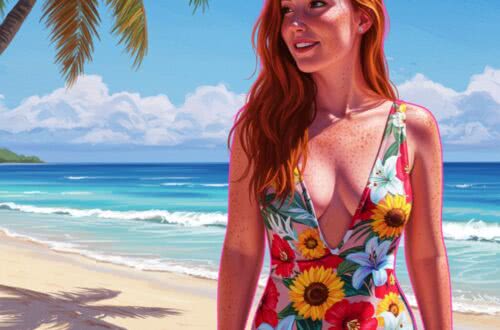 Plaża nad oceanem to idealne tło dla takiego stroju – wyobraźcie sobie delikatny szum fal, piasek pod stopami i naszą modelkę, która z gracją przechadza się brzegiem. Jej szczupła figura, ciemny blond w luźnym warkoczu i subtelna opalenizna sprawiają, że bikini wrap wygląda jak z wybiegu, ale z humorem – bo kto powiedział, że plaża musi być poważna? To miejsce, gdzie można eksperymentować, a to bikini zachęca do zabawy. Może zawiążcie wiązania w kokardę, by dodać dziewczęcego uroku, lub puśćcie je luźno dla boho efektu.