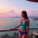 Teraz przejdźmy do tego, co kocham najbardziej: jak stylizować takie bikini, zwłaszcza na plaży nad oceanem. Wyobraźcie sobie scenerię – złoty piasek, turkusowe fale i wy ona, z hiszpańską urodą, w tym bikini z tropikalnymi wzorami. To nie tylko strój, to cała opowieść. Wysoki stan dodaje retro twistu, sprawiając, że nawet prosta plażowa sesja wygląda jak wyjęta z albumu mody z lat 60. A te palmy? One dodają egzotycznego smaczku, idealnie harmonizując z jej ciemnymi włosami i wyrazistymi rysami twarzy.