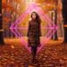 Neon-pink outline canvas of diamonds with modern airbrush oil painting with predominant colors such as red shades, pink shades, purple shades, orange shades, lemon shades of: Neon-pink outline canvas of diamonds with modern airbrush oil painting with predominant colors such as red shades, pink shades, purple shades, orange shades, lemon shades of: A stylish young woman strolling confidently through a cobblestone city street in early spring, wearing a light beige knee-length trench coat with a tied belt, paired with straight-leg blue jeans, white sneakers, and a simple white blouse. The scene features soft sunlight breaking through scattered clouds, with a hint of light rain in the air, blooming cherry blossoms nearby, and a Parisian-inspired urban backdrop with cafes and vintage architecture. Fashion illustration style, elegant and timeless, warm neutral tones, safe and wholesome atmosphere. BACKGROUND STYLE: Motion blur. BACKGROUND STYLE: Motion blur.