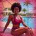 Neon-pink outline canvas of diamonds with modern airbrush oil painting with predominant colors such as red shades, pink shades, purple shades, orange shades, lemon shades of: of a slim, young Italian woman with long, straight brown hair and olive skin, wearing neutral-colored loose cotton shorts, a linen blouse, and flat sandals. She is standing confidently on a sunlit street in a hot city, smiling warmly. The background features classic Italian architecture with natural sunlight casting soft shadows, enhancing the summery and relaxed atmosphere. The scene is devoid of any distracting elements, ensuring a focus on her and the surrounding ambiance. The overall composition is bright and inviting, suitable for all audiences. BACKGROUND STYLE: Motion blur.