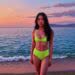 Neon-pink outline canvas of diamonds with modern airbrush oil painting with predominant colors such as red shades, pink shades, purple shades, orange shades, lemon shades of: of a woman in a pastel-colored dress with leaf patterns and a blouse featuring subtle graffiti, standing on a city street in front of an art gallery. She wears a stylish hat and carries a matching purse, exuding a gentle, feminine charm. The background includes other art galleries and buildings with colorful facades, reflecting an artistic urban environment. The scene is set during the day with soft, natural lighting, enhancing the impressionistic and vibrant color palette without overpowering the main subject. The composition focuses primarily on the woman, ensuring her elegance and the artistic ambiance are the central elements of the image. BACKGROUND STYLE: Motion blur.