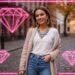 Neon-pink outline canvas of diamonds with modern airbrush oil painting with predominant colors such as red shades, pink shades, purple shades, orange shades, lemon shades of: Neon-pink outline canvas of diamonds with modern airbrush oil painting with predominant colors such as red shades, pink shades, purple shades, orange shades, lemon shades of: A stylish young man in his mid-20s standing confidently on a misty urban street during fall, wearing an oversized gray hoodie with a subtle abstract street art graphic print on the chest, hood partially up with contrasting black drawstrings, paired with matching gray joggers, white sneakers, and a backpack slung over one shoulder. The background features blurred city buildings, falling leaves, and soft gray tones to evoke a cool, modern streetwear vibe, in a clean illustrative style with warm lighting accents. BACKGROUND STYLE: Motion blur. BACKGROUND STYLE: Motion blur.