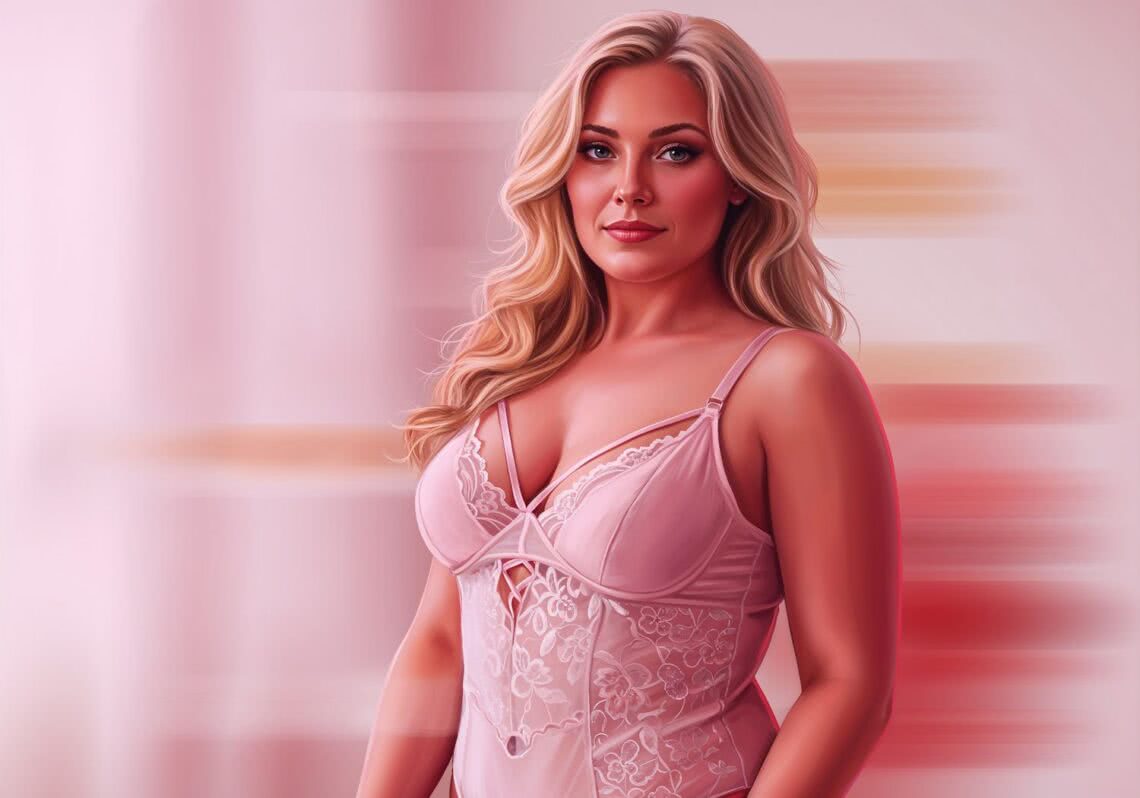 Teraz przejdźmy do fryzury, bo bielizna to nie tylko ciało – to całość! Białe body z paseczków uwielbia luźne, romantyczne uczesania, które podkreślają jego delikatny, koronkowy vibe. Wyobraź sobie: messy bun lub fale opadające na ramiona – to idealne dla naszej klepsydry. Włosy w nieładzie dodają ekstrawagancji, kontrastując z finezyjnymi paskami, które kusząco wychodzą spod ramiączek. Dlaczego? Bo fryzura na luzie równoważy zmysłowość bielizny – nie jest zbyt sztywna, pozwala na naturalny ruch, jak podczas tańca.
